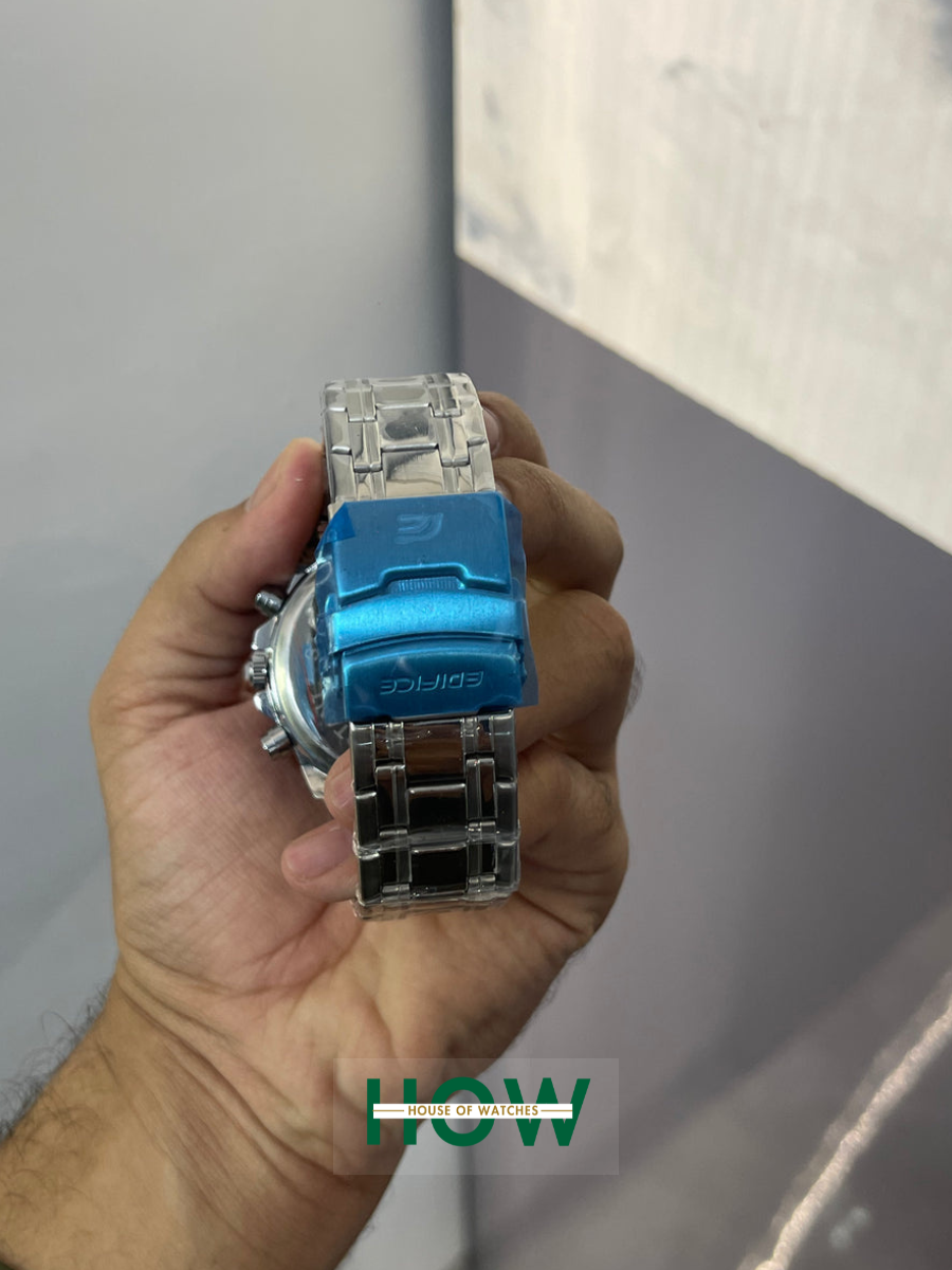 Blue Bezel Chronograph Watch for Men – Modern Steel Look