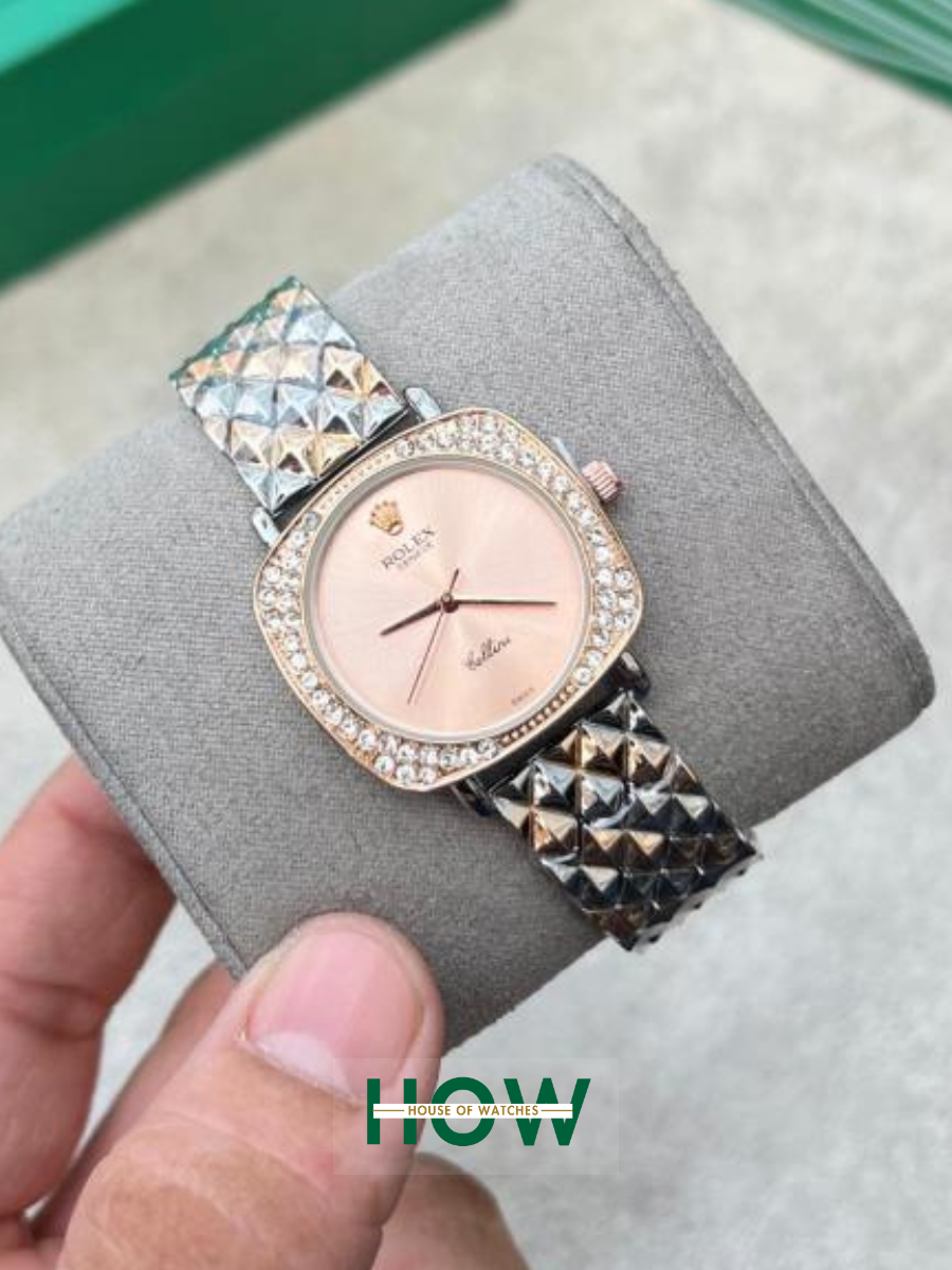 Elegant Two-Tone Case Pink Dial Formal Watch