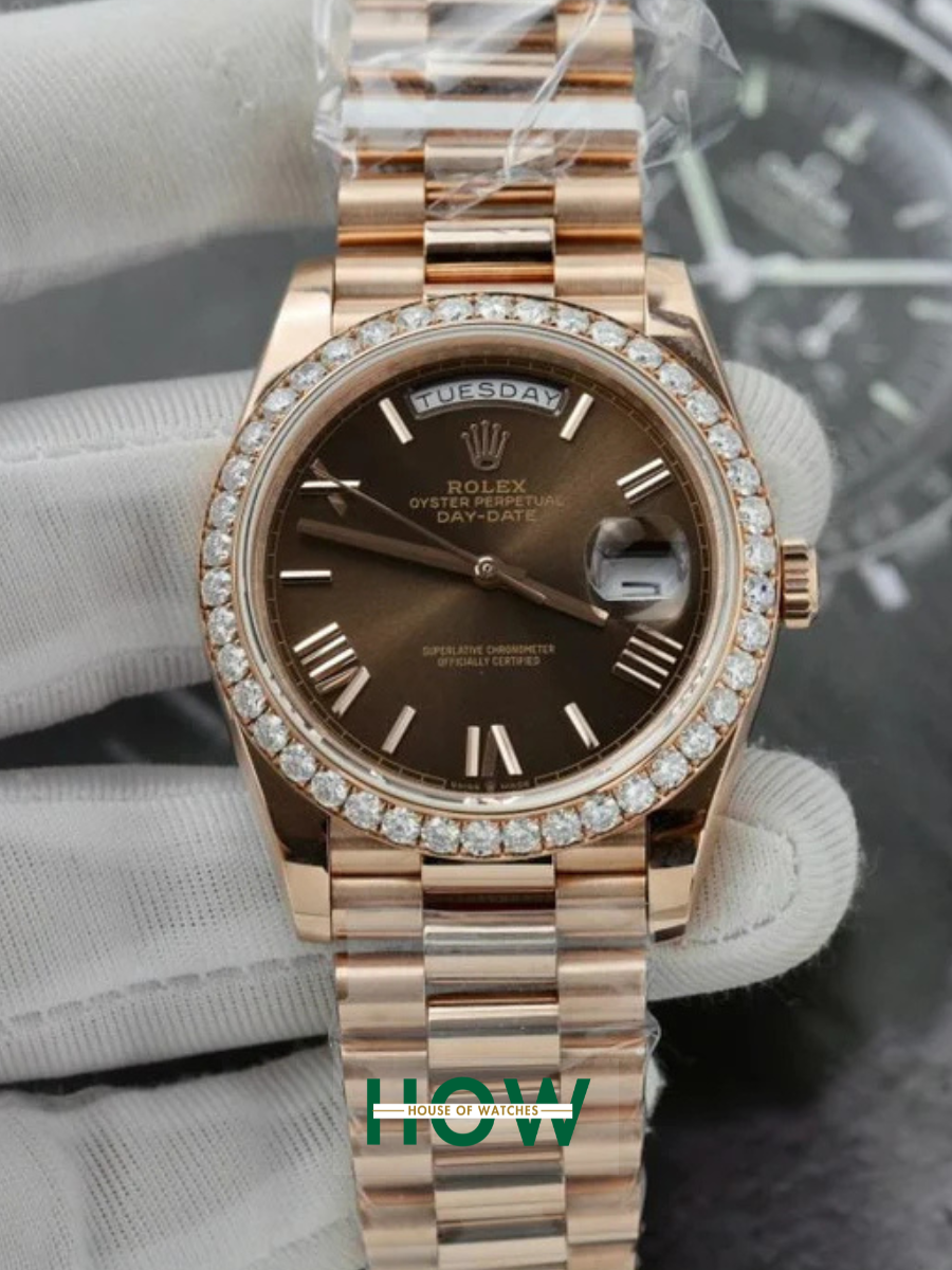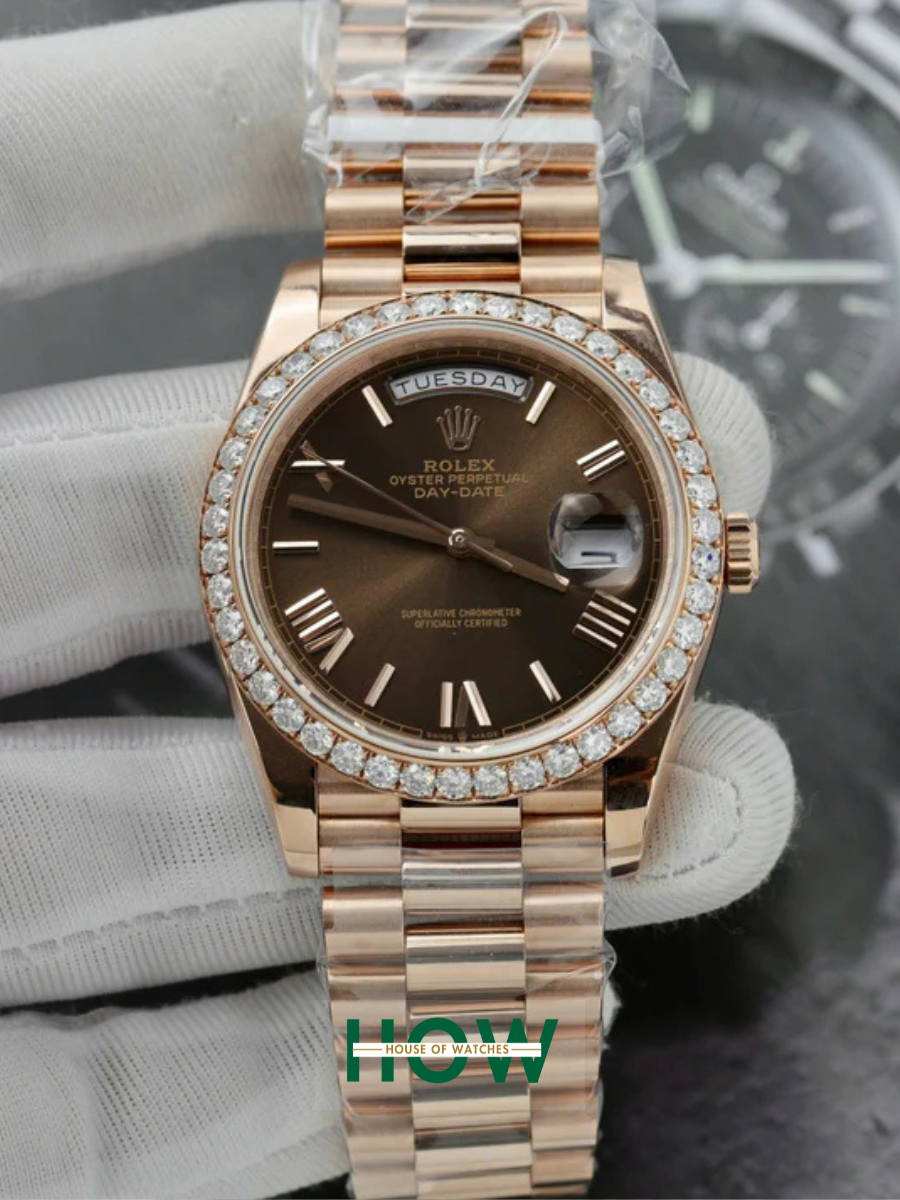 Luxury Rose Gold Brown Dial Watch – Diamond Bezel Edition