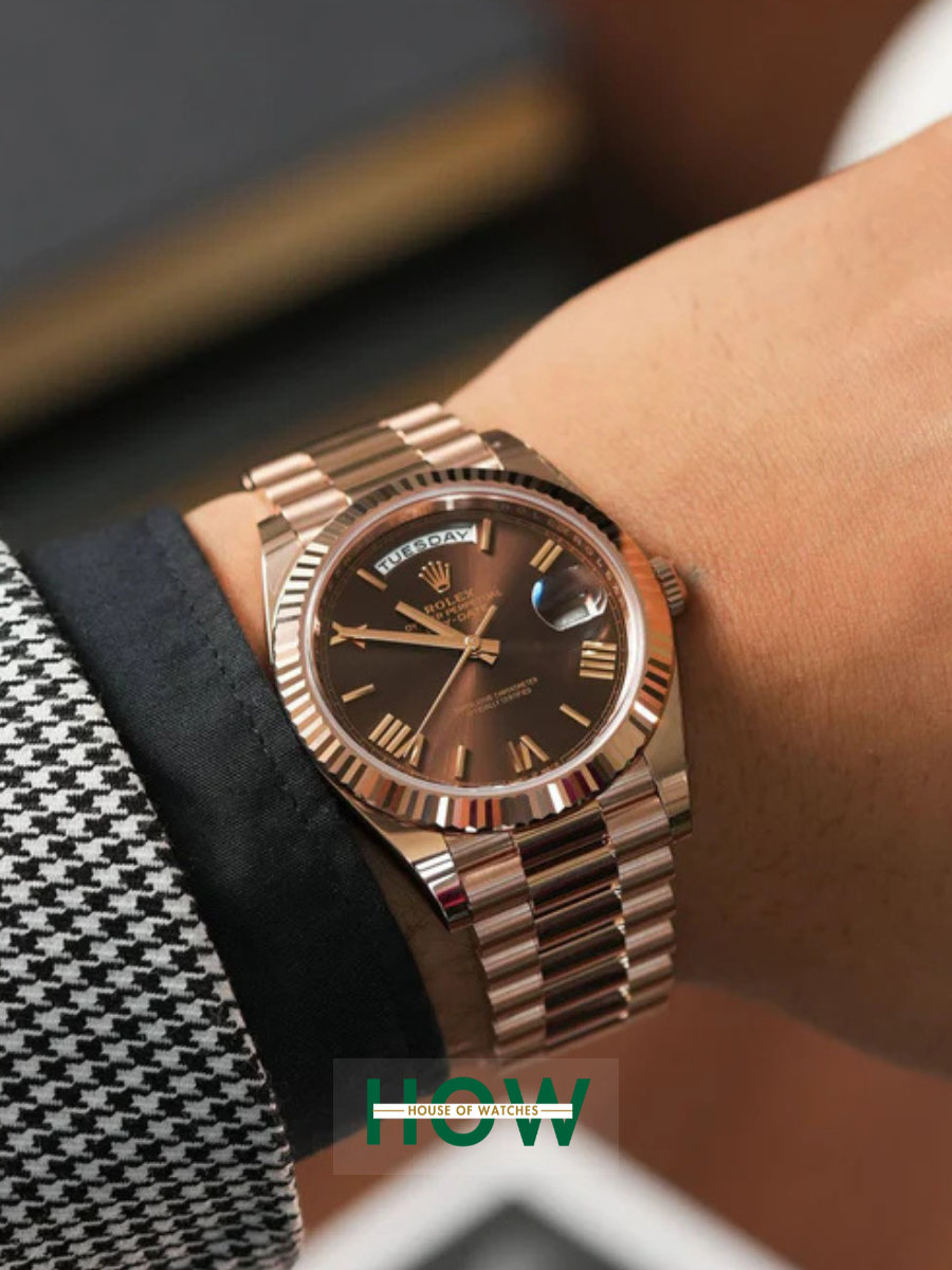 Luxury Rose Gold Day-Date Watch – Brown Dial Edition