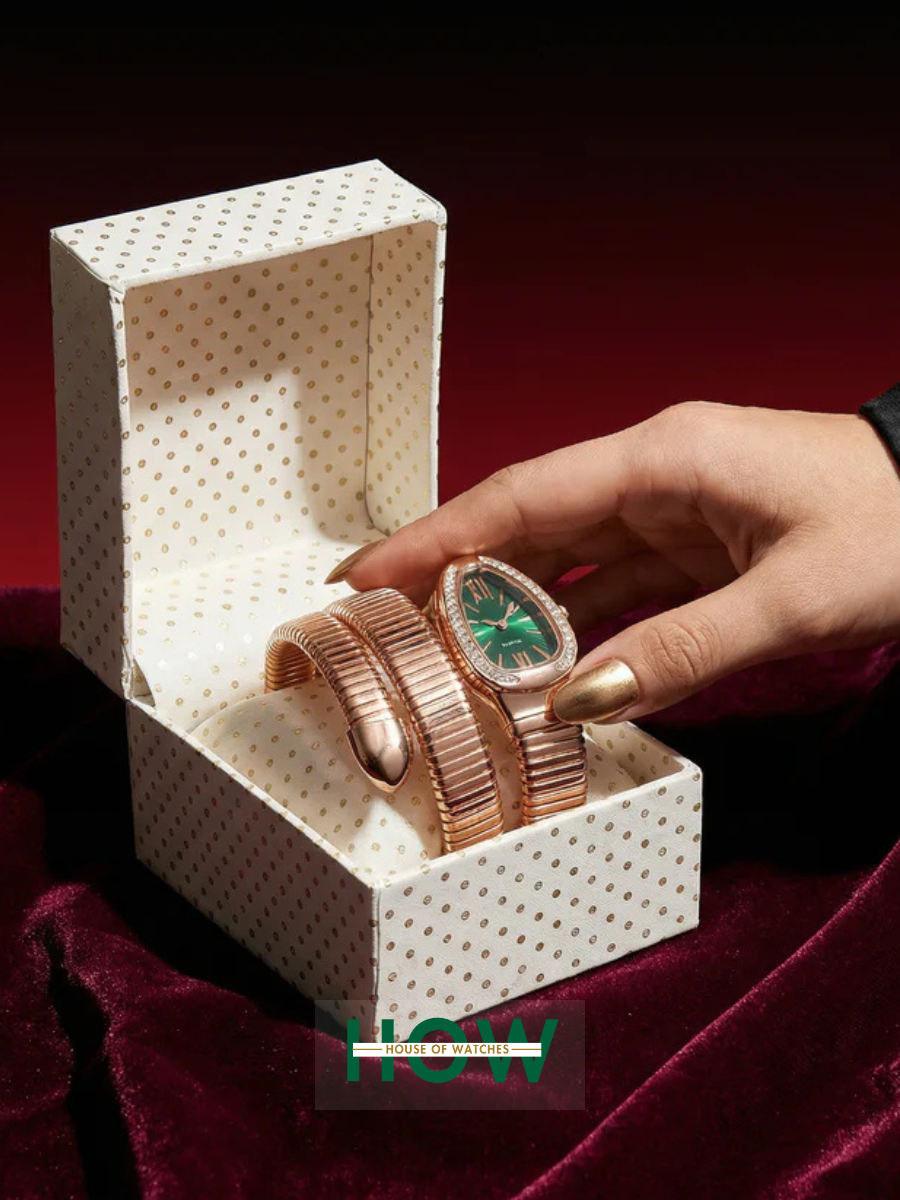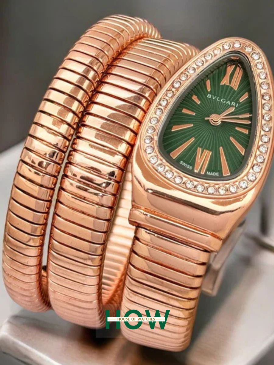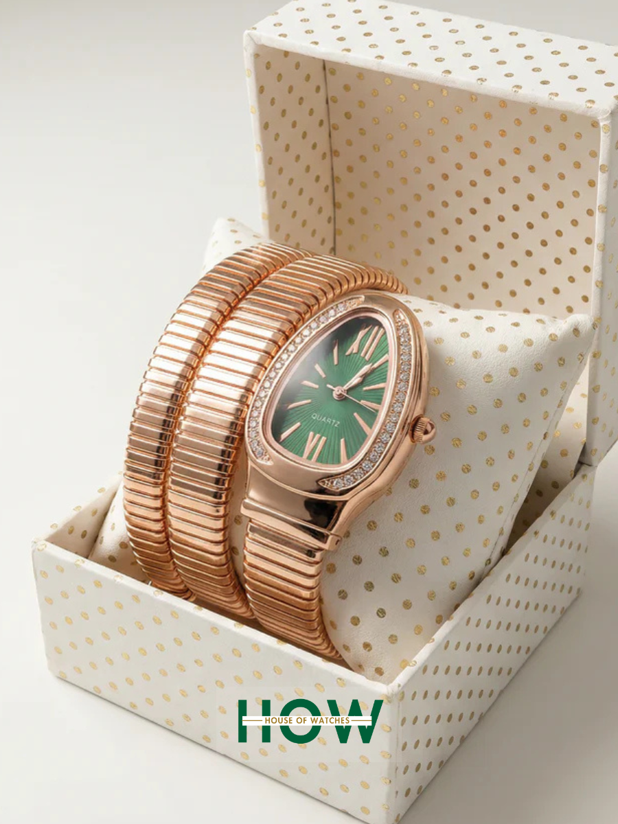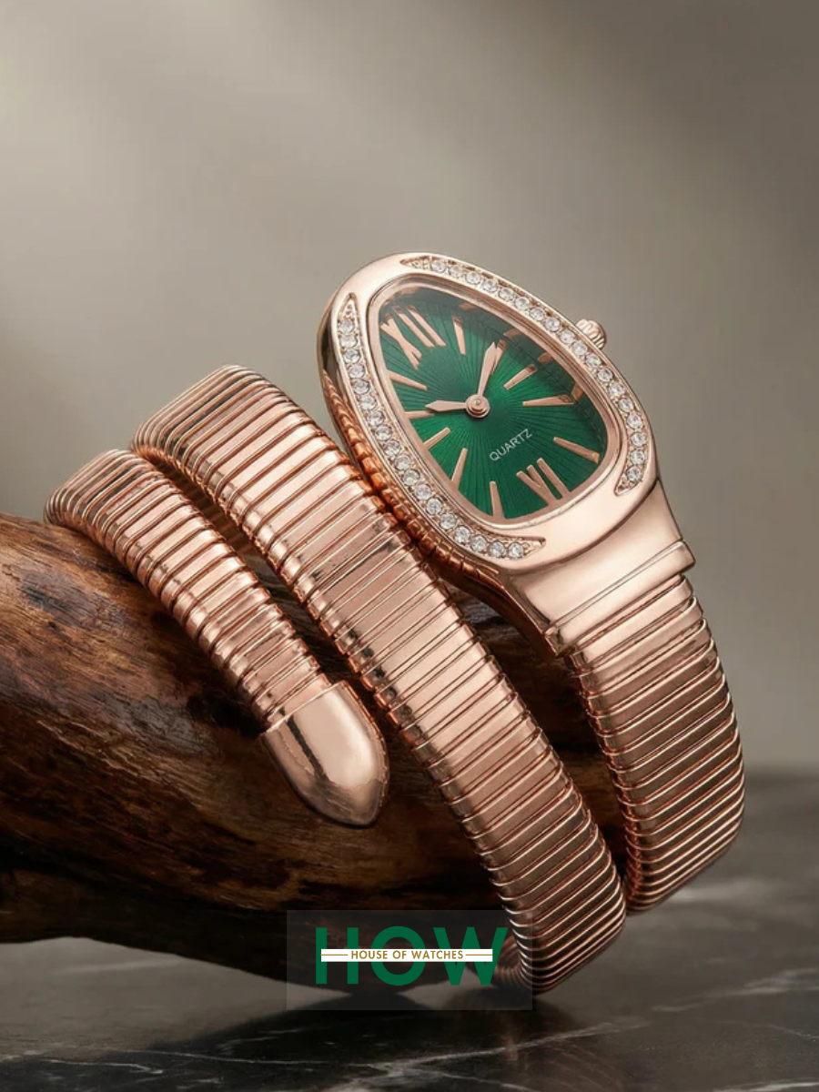 Luxury Snake-Style Copper Case Green Dial Women’s Watch