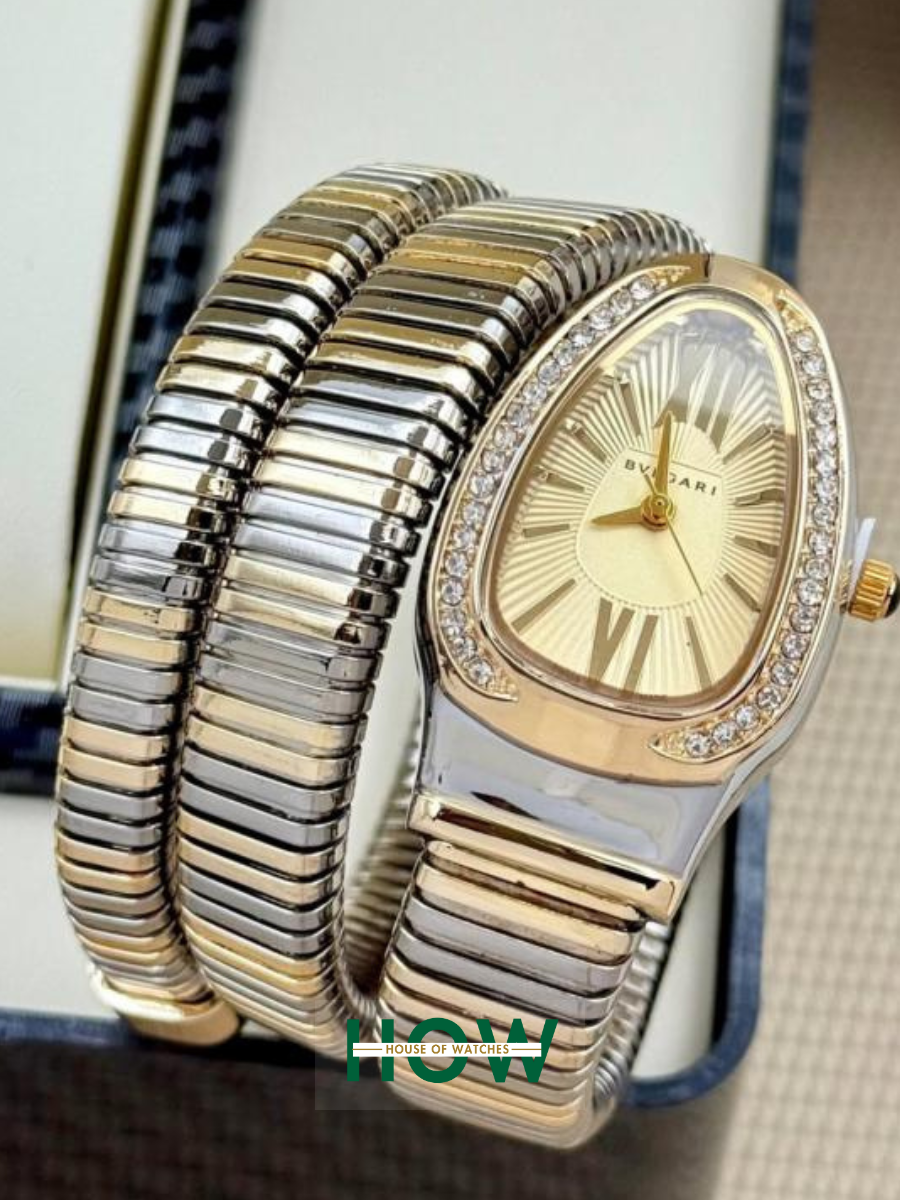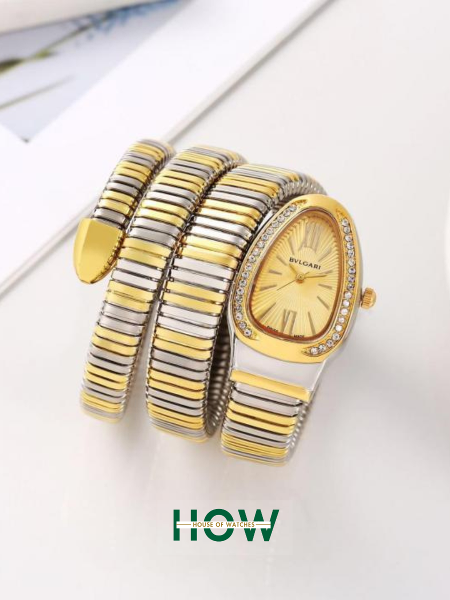 Luxury Snake-Style Gold Case Gold Dial Women’s Watch