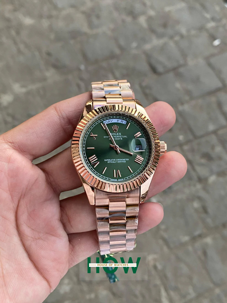 Rose Gold Green Dial Watch for Men – Stylish Luxury